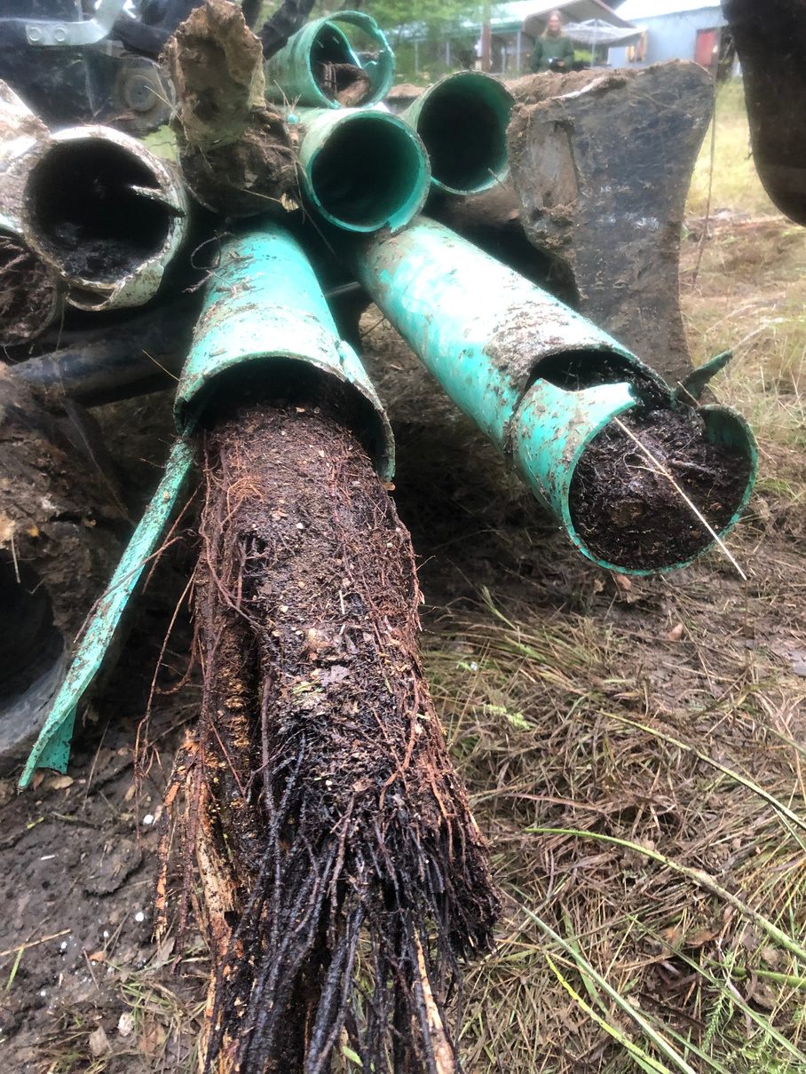 IF YOUR SEPTIC IS NEAR A TREE YOU ARE AT RISK FOR “ROOT BALLS”. ROOT BALLS OCCUR WHEN THERE IS A CRACK IN THE TANK OR PIPES ALLOWING WATER TO ESCAPE. THIS WILL CAUSE TREE ROOTS TO HAVE THE POTENTIAL TO GROW, SOME AS FAR AS YOUR SEPTIC LINE ITSELF. THIS CAN CAUSE YOUR SEPTIC SYSTEM TO FAIL AND POSSIBLY HAVE TO HAVE IT REPLACED OR RELOCATED.